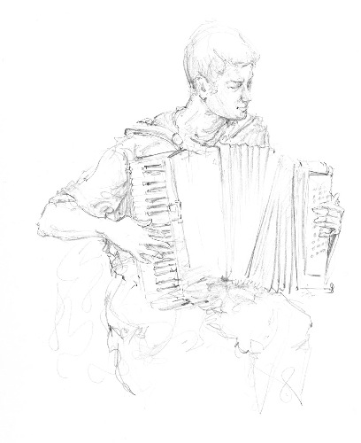 ANN MARTIN ~ Accordian Player  Skeagh, Co.Cork - graphite - 37 x 27 cm - €200