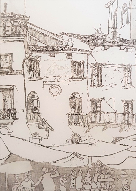 ADRIENNE SYMES - On The Mekong River - woodblock - €320
